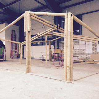On Monday, 7 December we started building a prototype of our pavilion bamboo structure in a workshop hall in Delft. Marcel Bilow - one of our mentors and head of the Bucky Lab Studio at TU Delft - offered us the great opportunity to build the 4m x 4m pavilion using the studio's machines and spaces. Here you can follow the Bucky Lab daily blog with the latest news on construction.(http://buckylab.blogspot.nl)